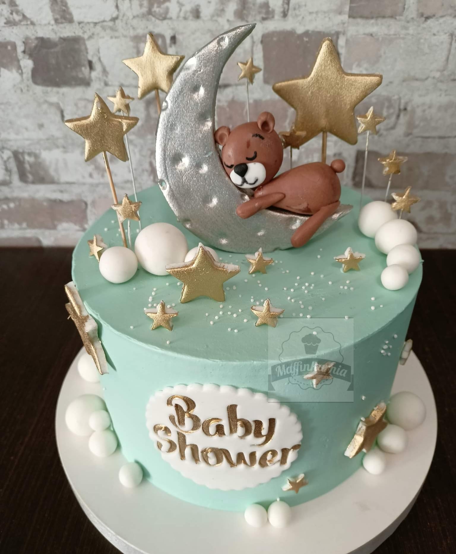 2628: Tort na baby shower z misiem na księżycu
